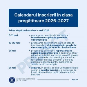 Inscriere 2026-2027 Pliant Inscriere 2026 – 2027 – Click AICI! Anunt Inscriere Clasa Pregatitoare Acte necesare inscriere pregatitoare Program inscriere clasa pregatitoare Criterii specifice de departajare